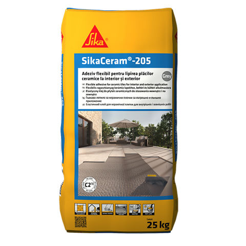 A Sika® Ceram-205 egy előkészített ragasztópor keverék, mely nagyteljesítményű cementet, polimert, osztályozott kvarchomokot és speciális adalékanyagokat tartalmaz.
